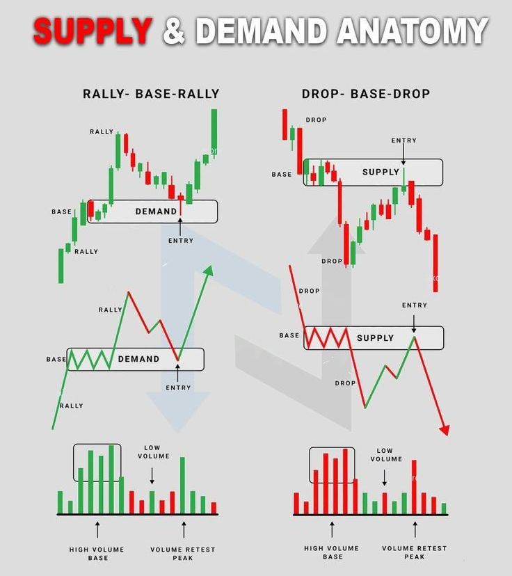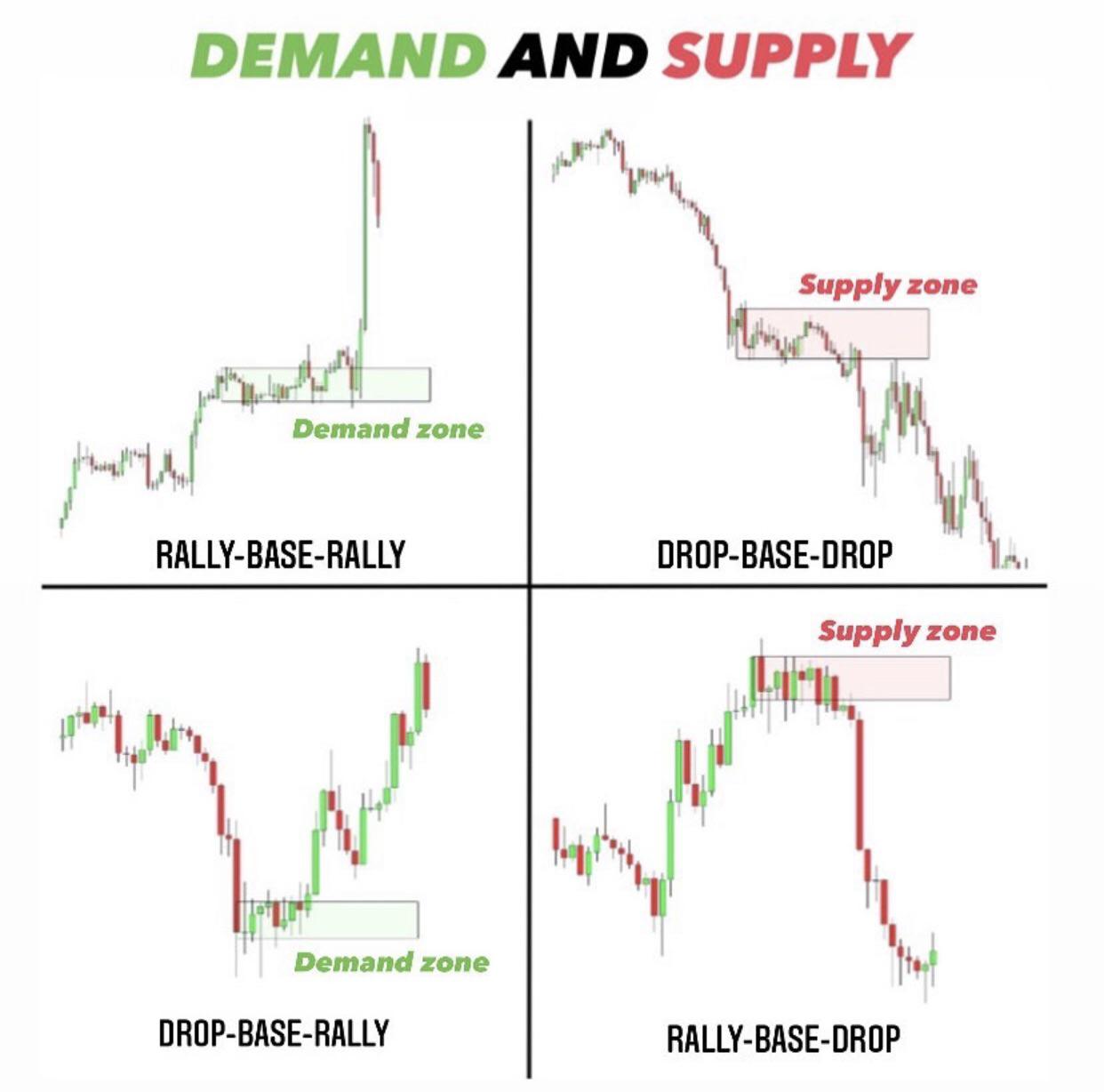 - برای فروش (از ناحیه عرضه): هدف شما ناحیه تقاضای قدرتمند بعدی در پایین قیمت خواهد بود.